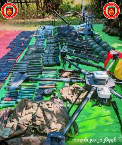 Along with him, 187 weapons, The battle was the largest single-day loss of ammunition for the Myanmar Military Commission in the region, with 24,652 rounds of ammunition and 530 grenades captured. The Myanmar Military Commission launched 41 airstrikes, using jet fighters, Y-12s, and Gyrocopters, as well as kamikaze drones, to prevent the camps from being relinquished, but the rebels were able to completely take control of all the camps.