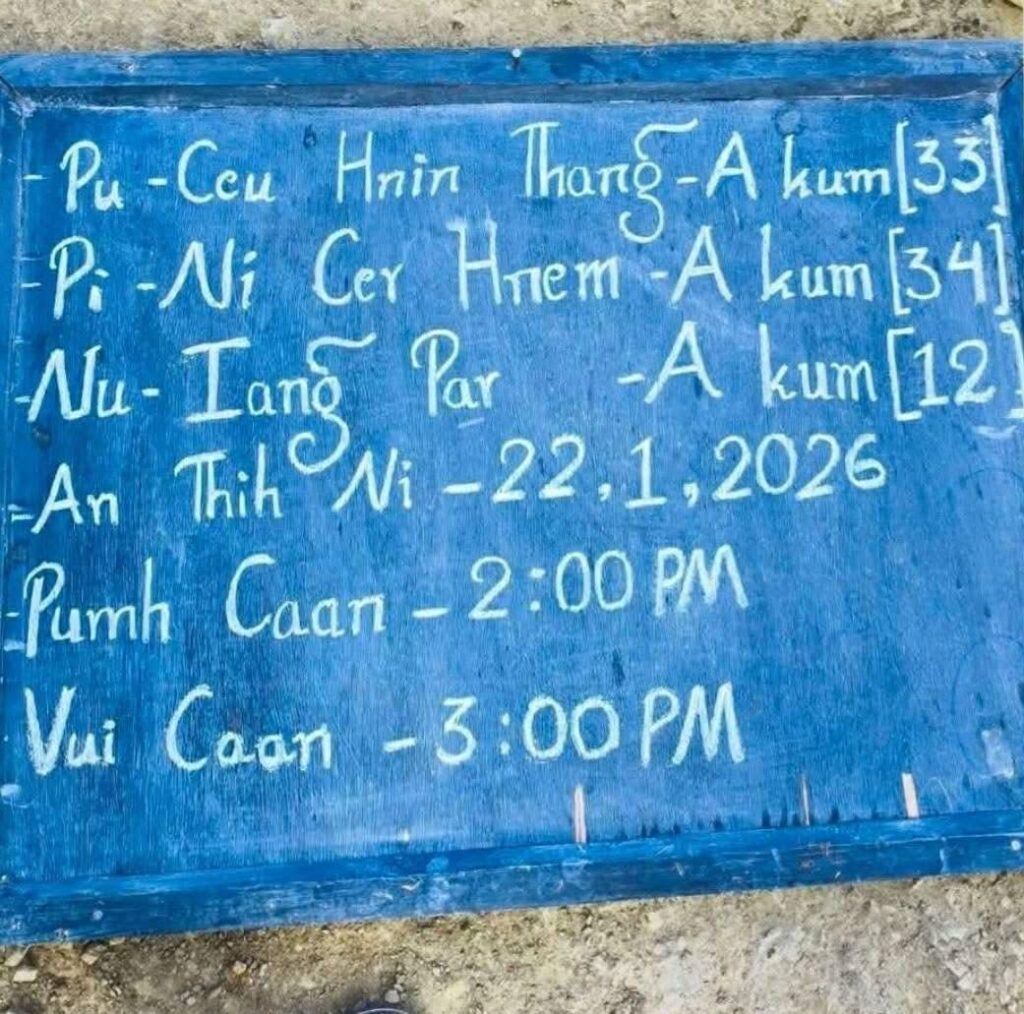 Chin State, Thantlang khuapi huam Kuhchah khua-ah January 22, 2026 zan (11:00pm) hun pawlin papi khatin a zi le a tanu thau tawh kap lumin, a kapkhit ciangin amah le amah kikaplum leuleu cih thu kiza hi. January 22, zan laitak in Pu Ceu Hnin Thang (Kum 33) in a ihmu laitak a zi Pi Ni Cer Hnem (kum 34) le a tanu nau lai Iang Par (kum 12) gual thau tawh kaplum hi. A zi pen a lupna tung mahah sipah a, a tanu pen khuamite in zato puak pah uh himah leh a liamna nasia lua ahih manin, lam kalah a nuntakna bei ci hi.